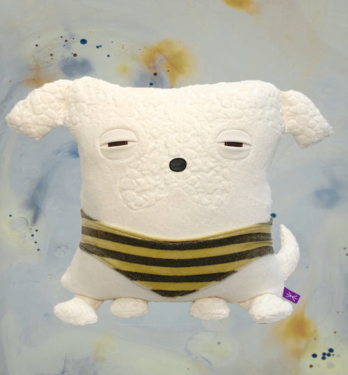 Nous pouvons broder sur une cuirette colorée un prénom ou tout autre chose pour personnaliser votre coussin carré (pas sur les peluches).